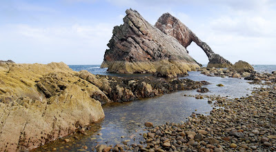 Bow Fiddle Rock is a natural sea arch near Portknockie on the north-eastern coast of Scotland. It is so called because it resembles the tip of a fiddle bow.